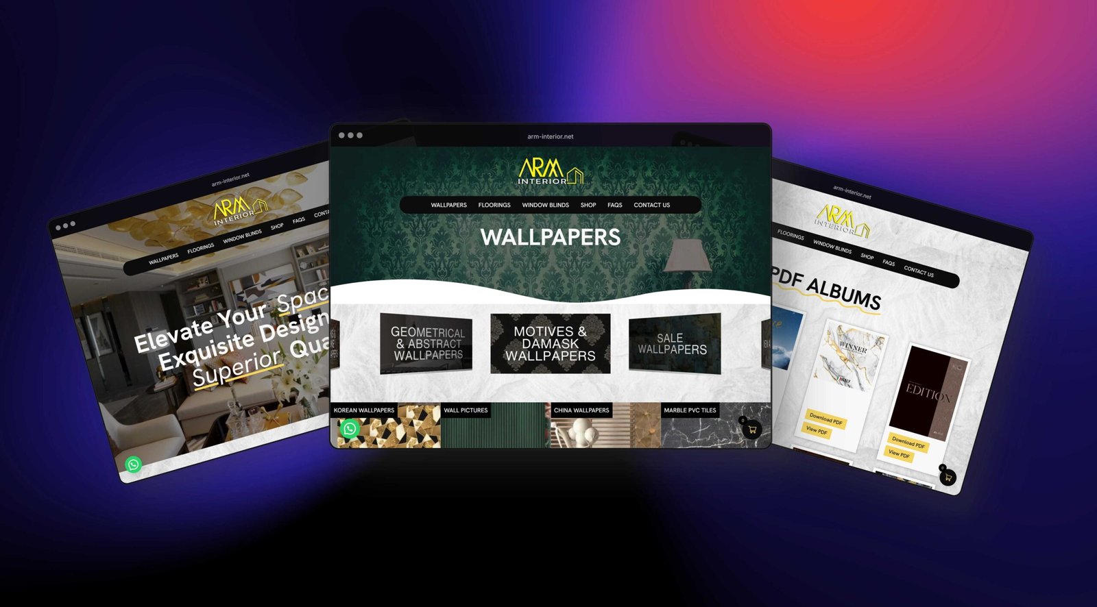 ARM Interior is a premium interior design and decor brand specializing in wallpapers, flooring, and blinds. While their physical designs are luxurious, their old website was far from it — scoring just 19/100 on speed, bloated with media, and lacking user flow. I stepped in to reimagine the experience — from subtle animations and structured layouts to performance-focused development and modern eCommerce integration.