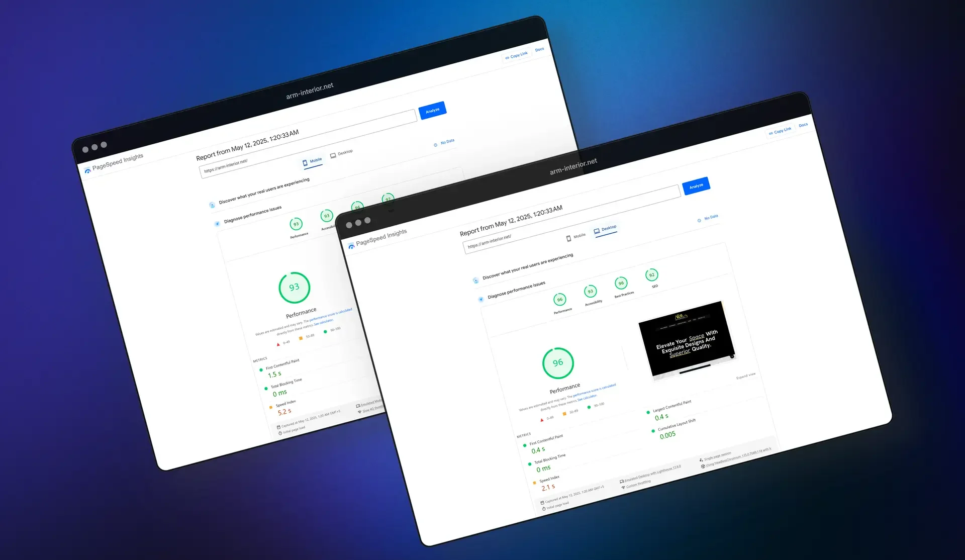 ARM Interior’s transformation was built on a complete performance-first design philosophy. From a brand-new UI with elegant type, muted luxury color tones, and product-centric layouts — to a tailor-made checkout system that feels like a natural extension of their premium offering — every detail was crafted to elevate their customer experience and online presence.Their final website now loads lightning-fast, navigates intuitively, and mirrors the sophistication they bring to physical spaces.