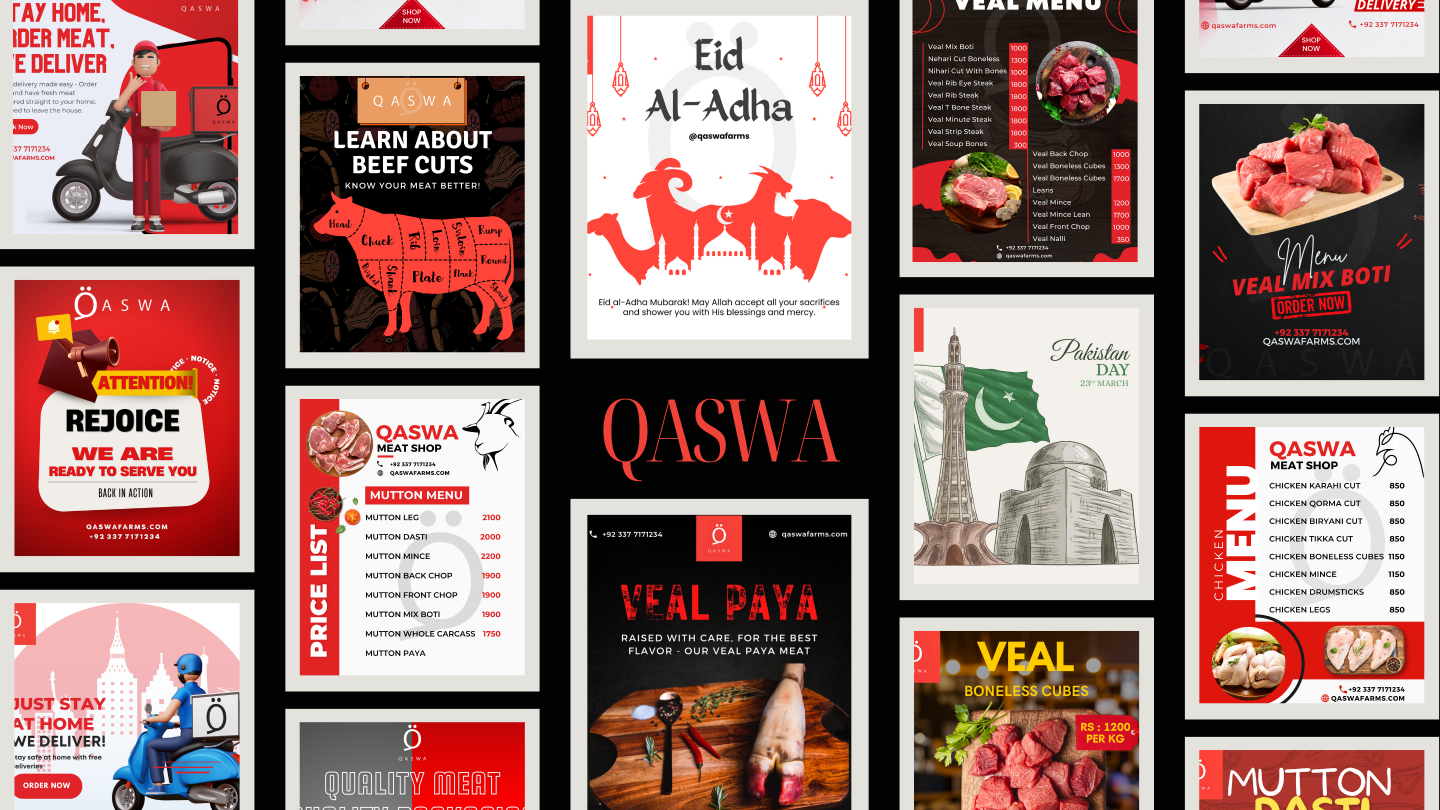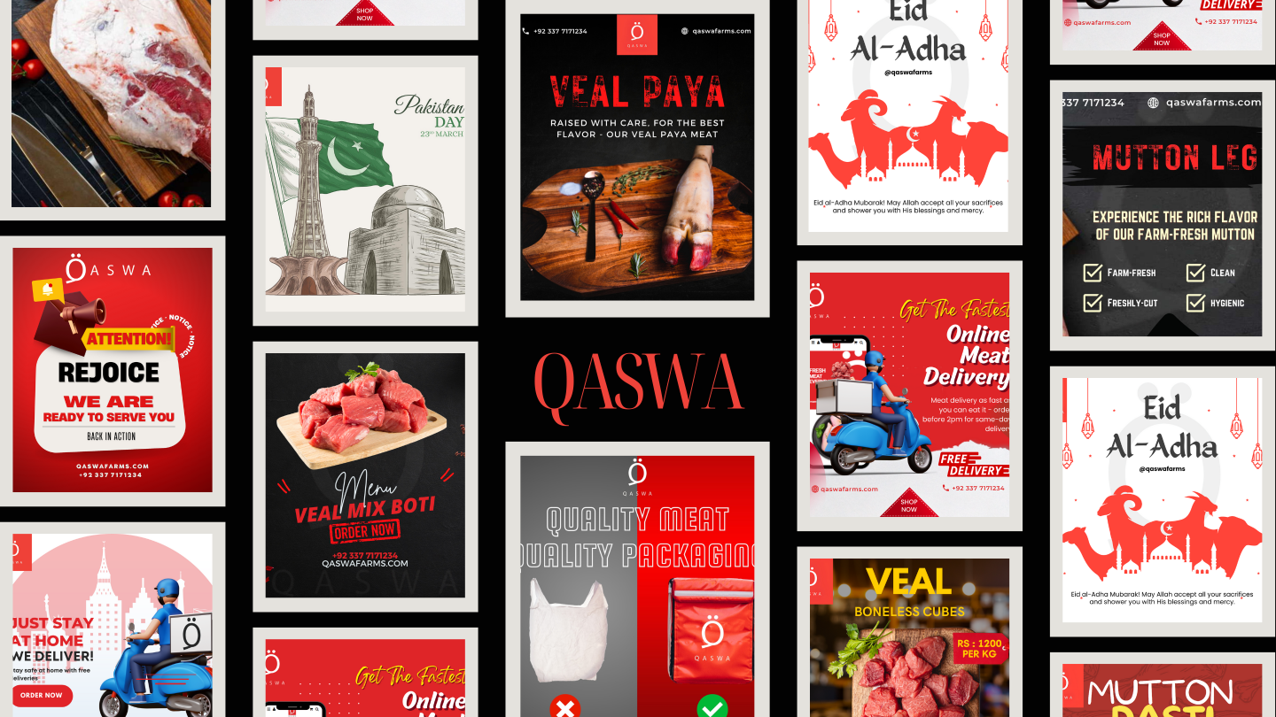 I redesigned their entire social media presence by producing high-quality reels, product videos, and engaging posts for multiple occasions. Through consistent daily posting, improved visual branding, and impactful content, I helped Qaswa Farms revive their online identity and build stronger engagement with potential customers.